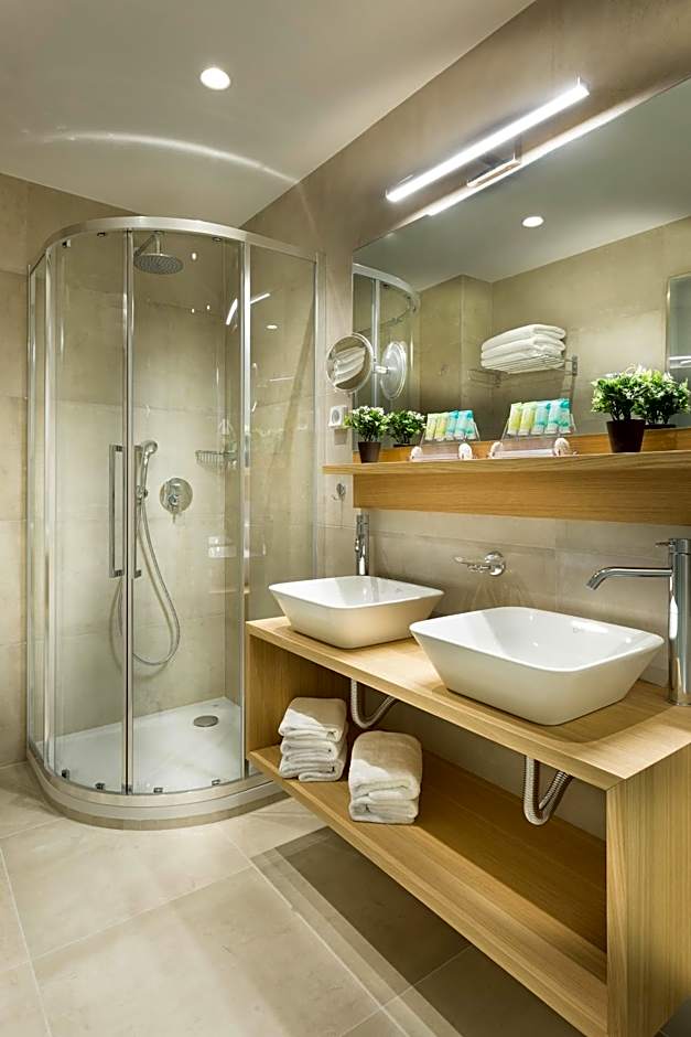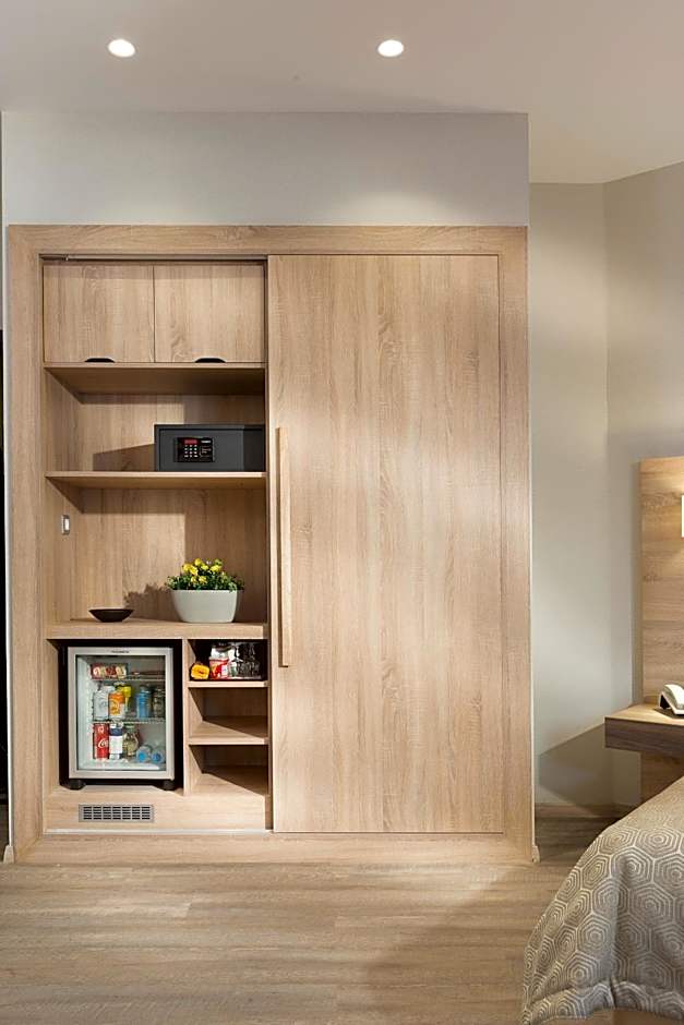 Air-conditioned room with free Wi-Fi, satellite TV and mini-bar. Includes soundproofed windows, direct dial telephone, safety box and hairdryer.